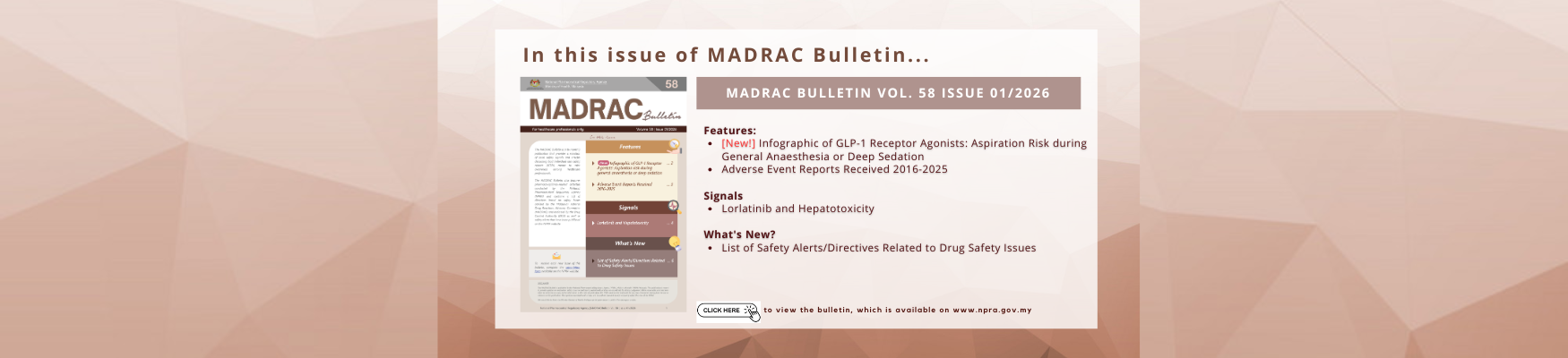 NPRA mission is to safeguard the nation’s health through scientific excellence in the regulatory control of medicinal products and cosmetics.