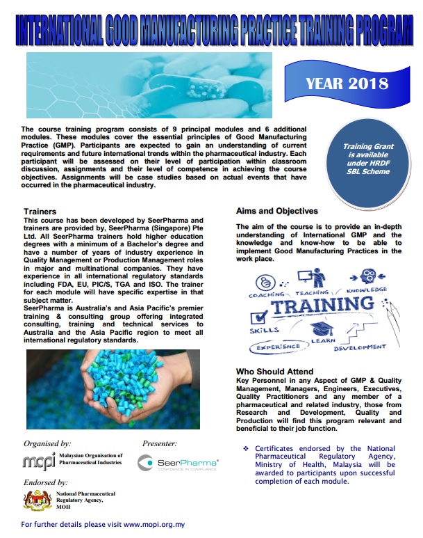 The course training program consists of 9 principal modules and 6 additional modules. These modules cover the essential principles of Good Manufacturing Practice (GMP). Participants are expected to gain an understanding of current requirements and future international trends within the pharmaceutical industry. Each participant will be assessed on their level of participation within classroom discussion, assignments and their level of competence in achieving the course objectives. Assignments will be case studies based on actual events that have occurred in the pharmaceutical industry Àims & Objectives : Who Should Attend