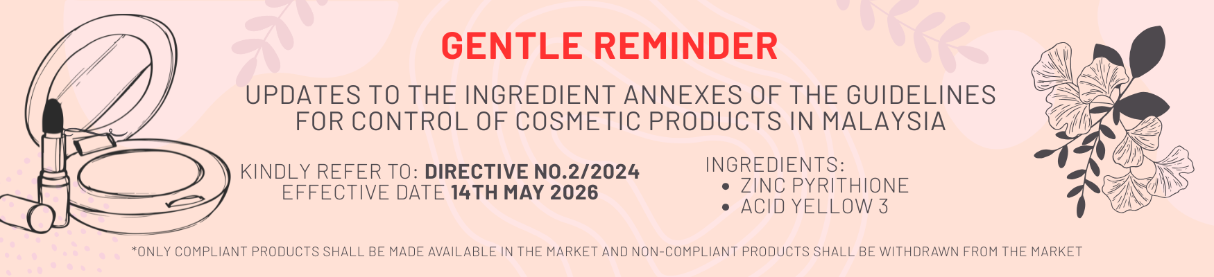 PEKELILING BIL 1/2026 MAKLUMAN BERKENAAN STATUS KEMASKINI BAHAN-BAHAN DALAM ANNEX PADA GUIDELINES FOR CONTROL OF COSMETIC PRODUCTS IN MALAYSIA |