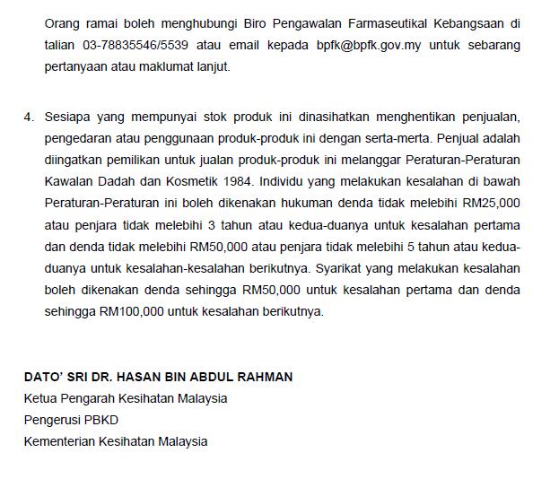 The Government of Malaysia and the National Pharmaceutical Regulatory Agency are not responsible for any loss or damage caused by the usage of any information obtained from this website.