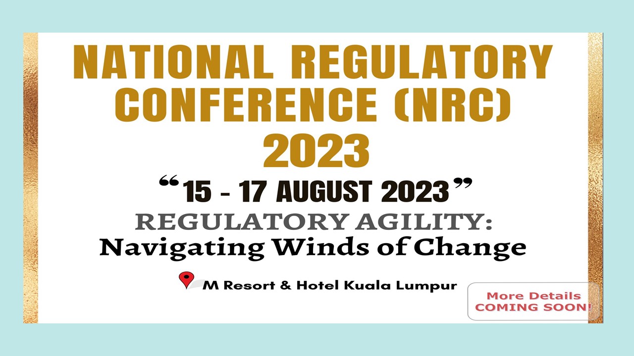 Bahagian Regulatori Farmasi Negara (NPRA), Kementerian Kesihatan Malaysia akan menganjurkan National Regulatory Conference 2023 (NRC 2023) pada 15-17 Ogos 2023 bertempat di M Resort & Hotel, Kuala Lumpur. Makluman lanjut berkenaan NRC 2023 akan dihebahkan melalui laman sesawang NPRA dalam masa yang terdekat.
