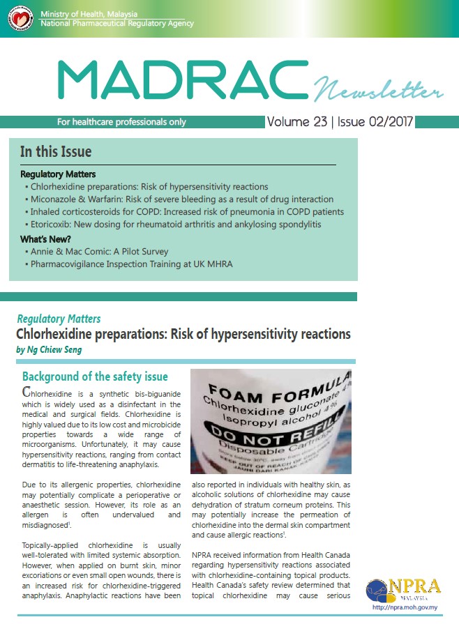 MADRAC Bulletin - Issue 02/2017Regulatory Matters▪ Chlorhexidine preparations: Risk of hypersensitivity reactions What’s New▪ Annie & Mac’s Adventures: Pharmacovigilance Comic Book Pilot Survey ▪ Pharmacovigilance Inspection Training at the UK MHRA