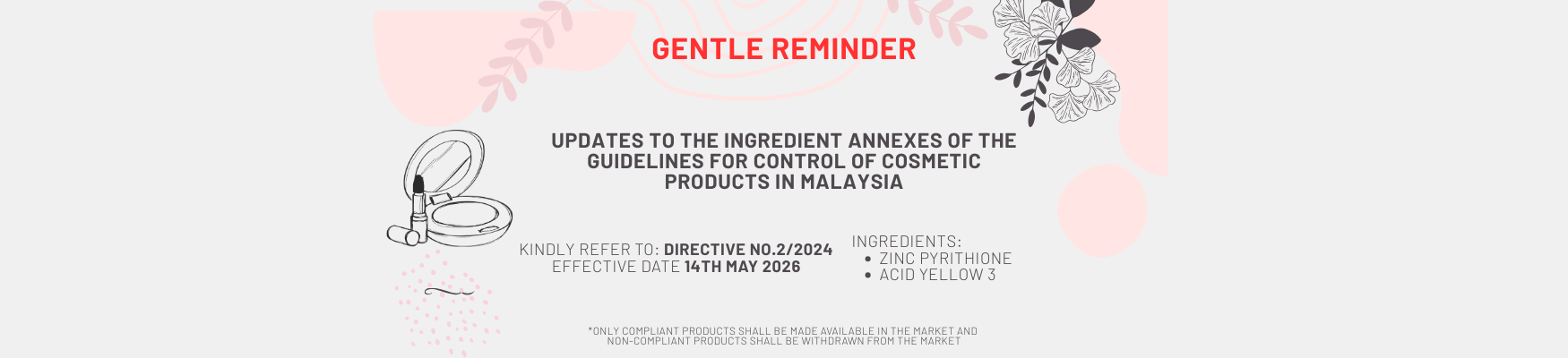 PEKELILING BIL 1/2026 MAKLUMAN BERKENAAN STATUS KEMASKINI BAHAN-BAHAN DALAM ANNEX PADA GUIDELINES FOR CONTROL OF COSMETIC PRODUCTS IN MALAYSIA |