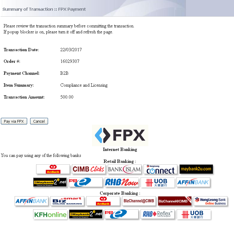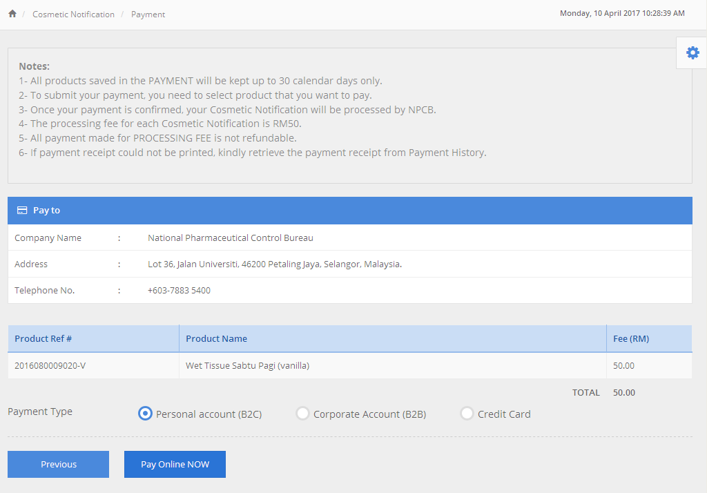 Step 1 : Choose method of payment, i.e. corporate account for B2B