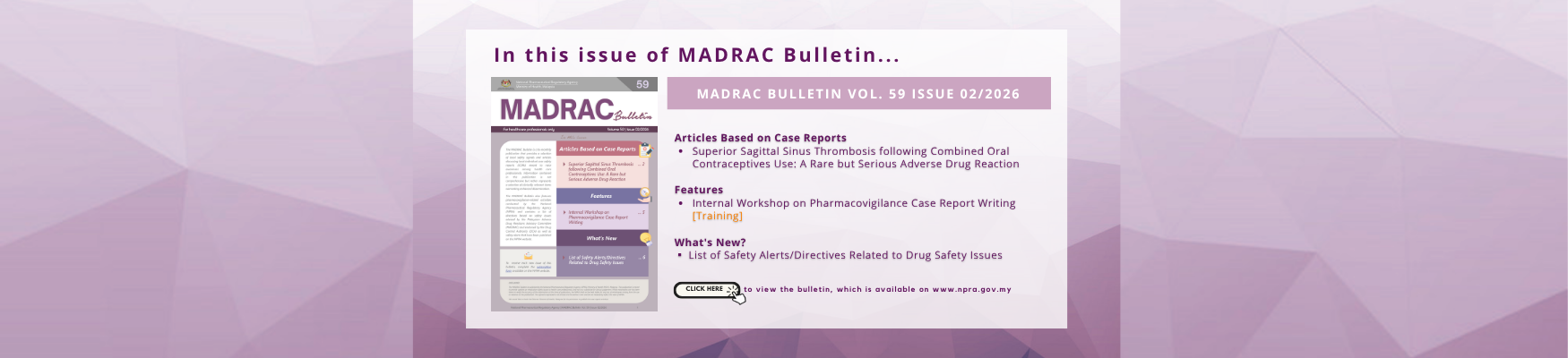 Untuk melaporkan kesan sampingan atau kesan adverse yang disyaki oleh ubat atau vaksin