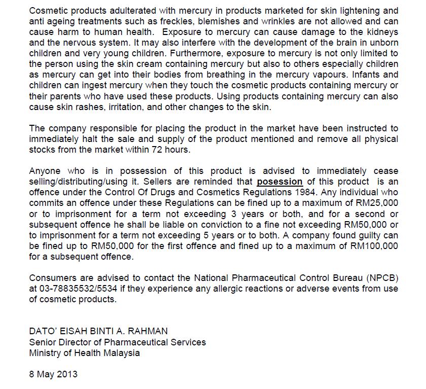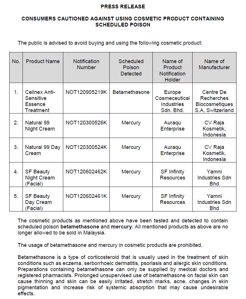 KOSMETIK JENAMA CELLNEX, NATURAL 99 DAN SF BEAUTY TELAH DIKESAN MENGANDUNGI RACUN BERJADUAL