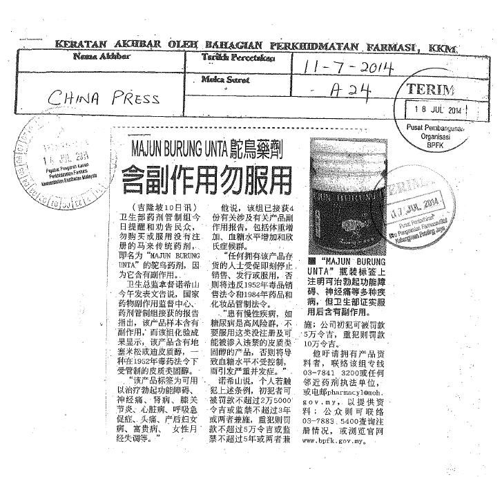 CHINA PRESS : MAJUN BURUNG UNTA