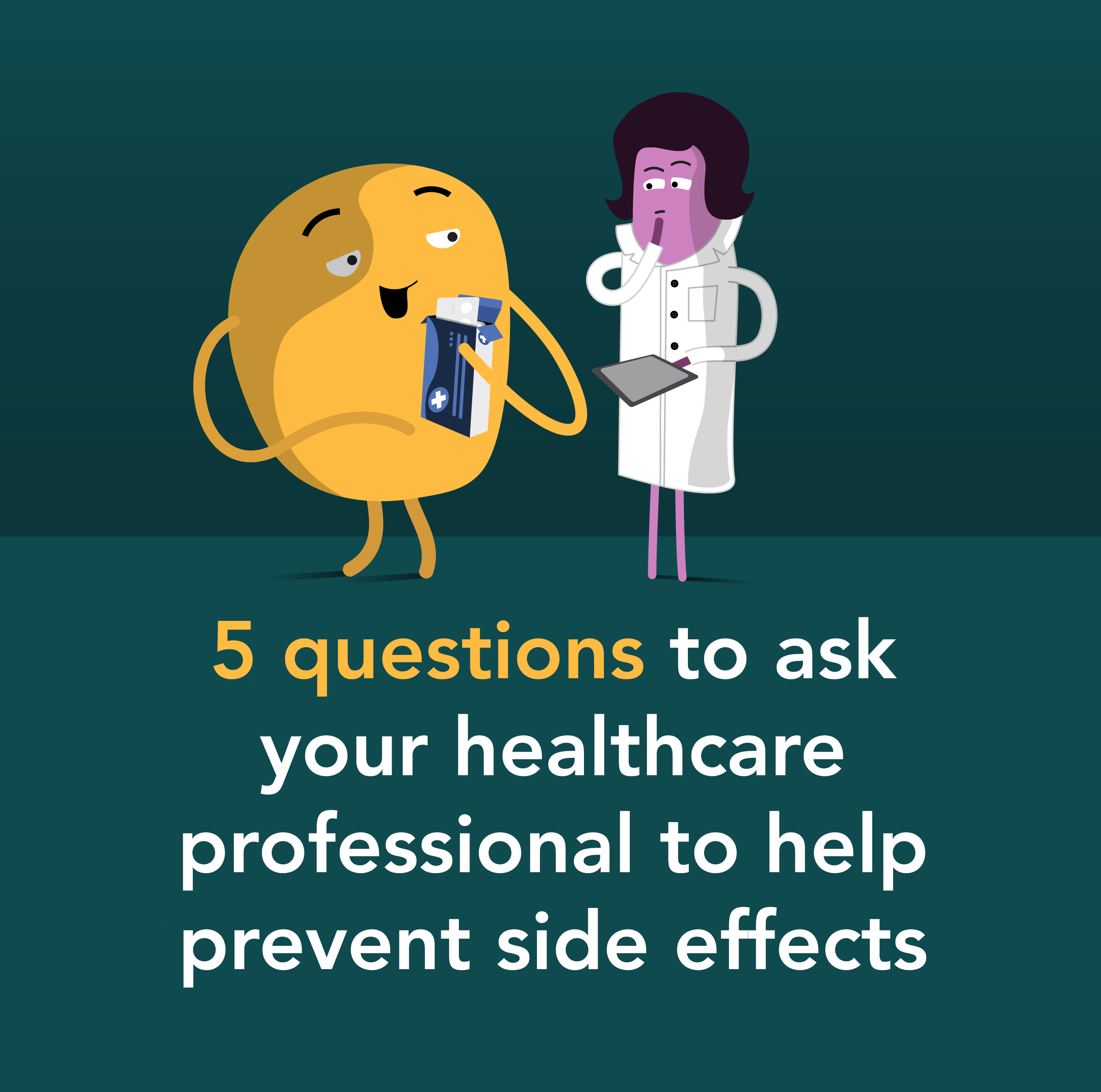 📌 Here are 5️ questions YOU – as patients or their carers – can ask your healthcare professional to help you make informed decisions and raise awareness of preventing side effects: