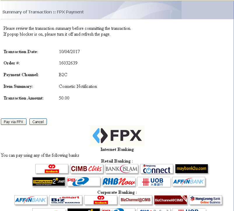 Step 2: Confirm B2C (personal account) and Click pay via FPX