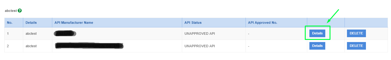 - If the API manufacturer is not found from the list. Please click "Not Listed API Manufacturer" and fill up the form to request for listing.