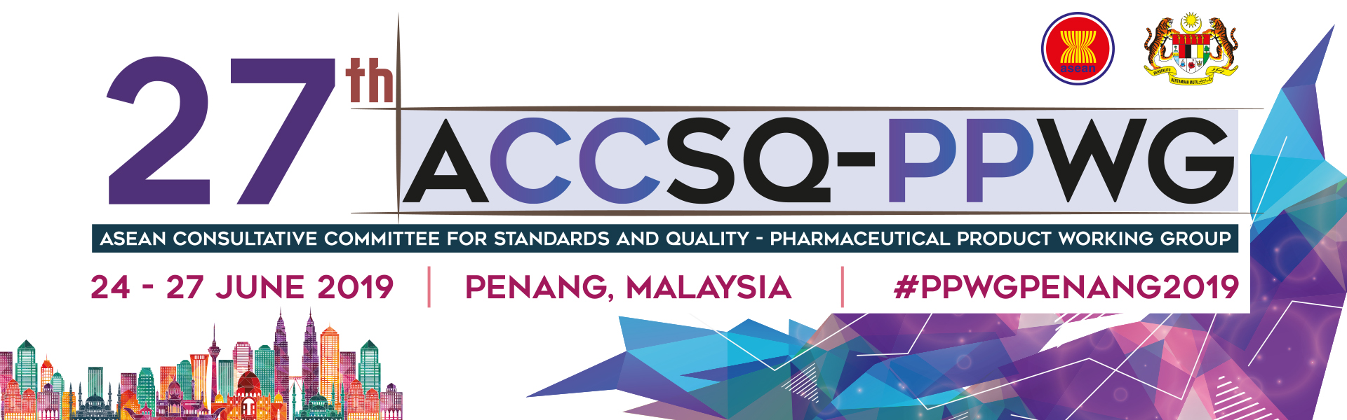 The 27th ASEAN Consultative Committee for Standards and Quality - Pharmaceutical Product Working Group (ACCSQ PPWG) will be held on 24-27 June 2019 at Hotel G Gurney, Penang, Malaysia.